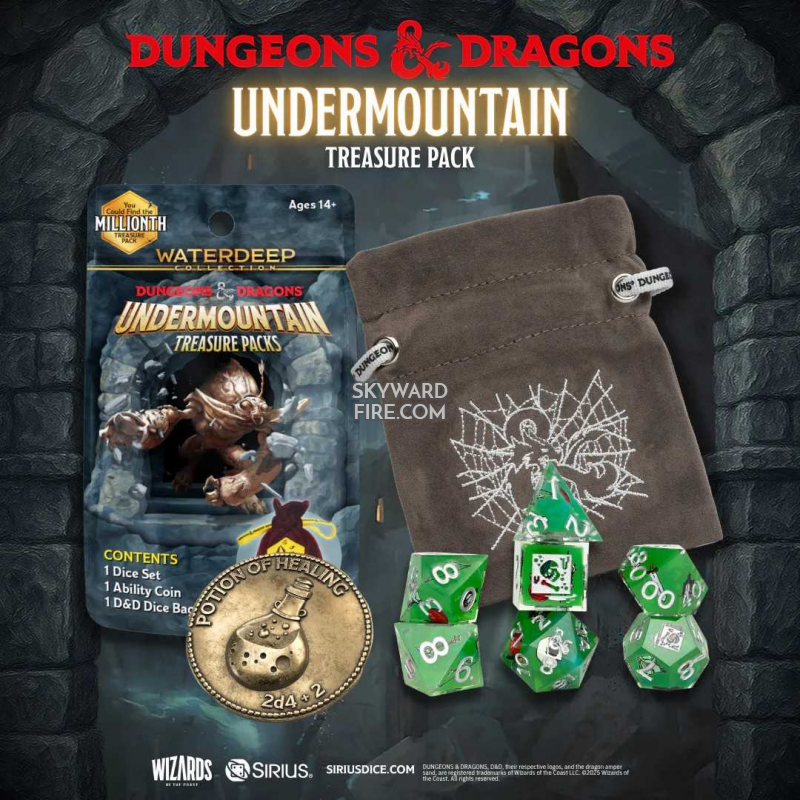 Brave the dark halls of Undermountain and unearth a hoard of collectibles with the Undermountain Treasure Packs – the third installment of the Waterdeep Collection by Sirius Dice, officially licensed by Dungeons & Dragons.