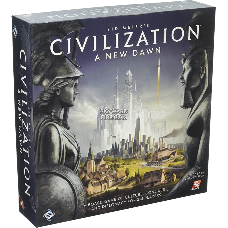 Sid Meier's Civilization: A New Dawn is a strategy board game in which two to four players act as the rulers of history's most memorable empires. Over the course of the game, players will expand their domains, gain new technologies, and build many of humanity's greatest wonders. In the end, one nation will rise above all others to leave its indelible mark upon history.