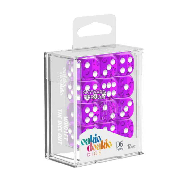 Oakie Doakie DICE - Translucent, Purple (12 D6 Dice, 16mm)
