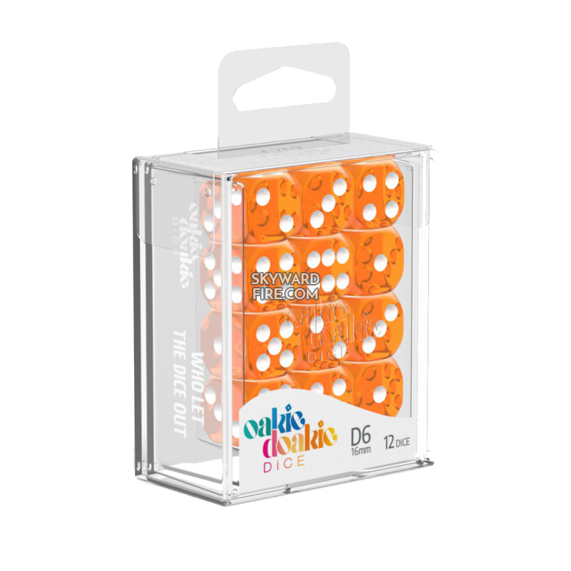 Oakie Doakie DICE - Translucent, Orange (12 D6 Dice, 16mm)