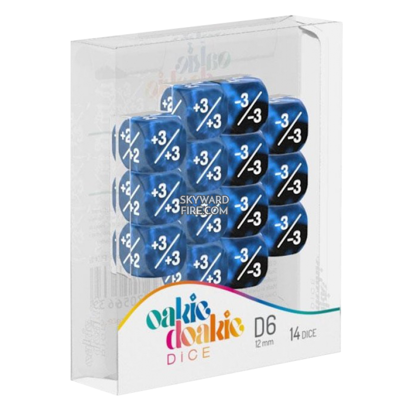 Oakie Doakie DICE - Marble & Gemidice, Blue (14-D6 12mm Positive & Negative)
