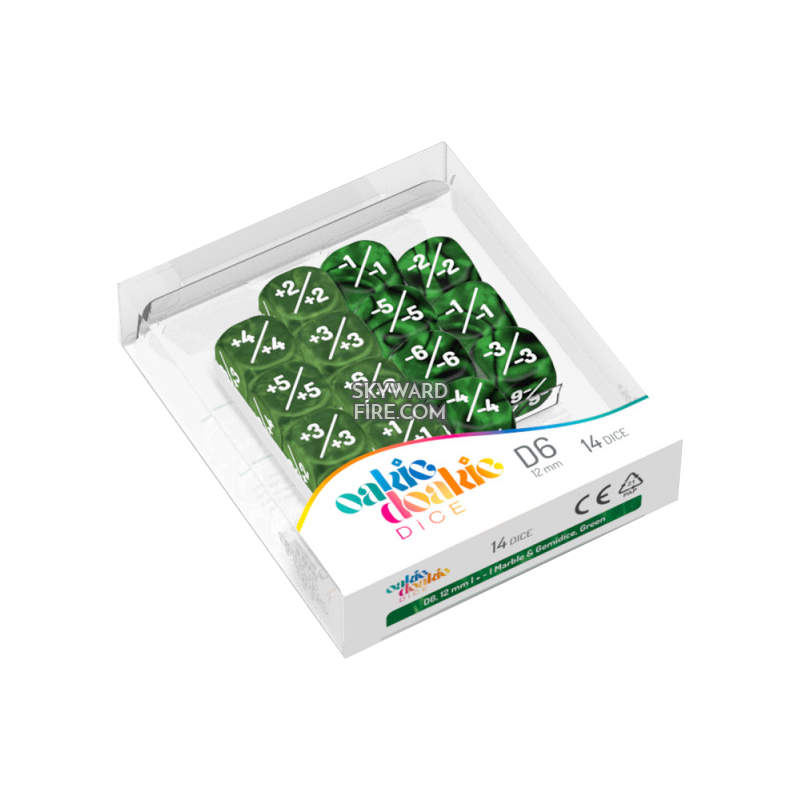 Oakie Doakie DICE - Marble & Gemidice, Green (14-D6 12mm Positive & Negative)