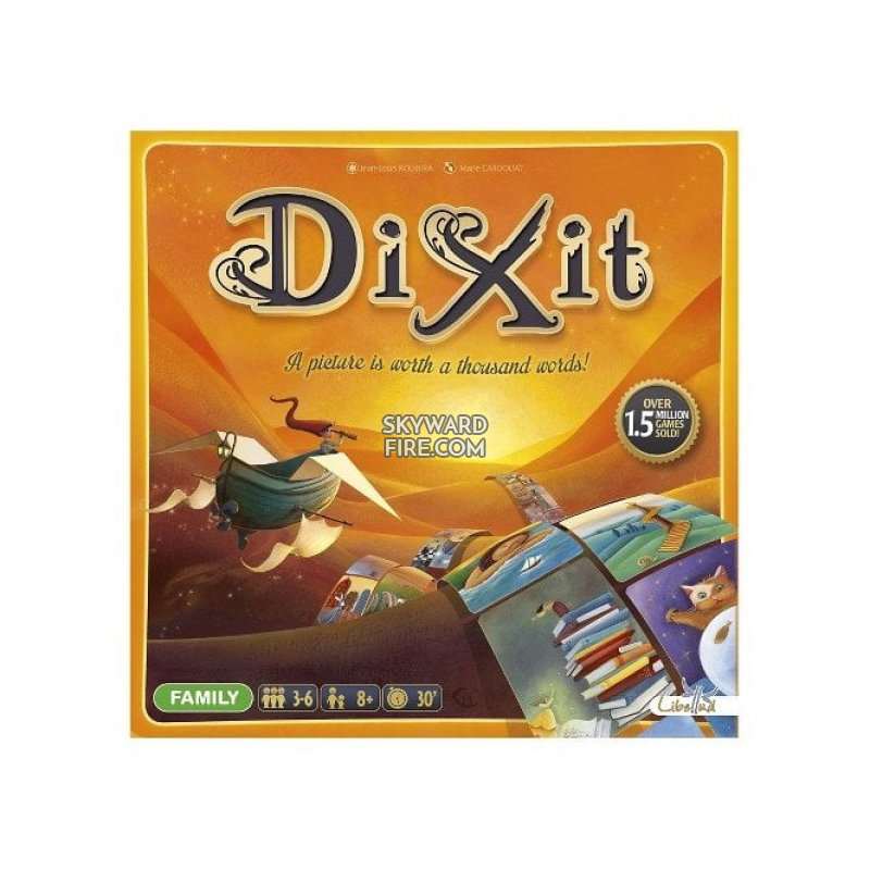 One player is the storyteller for the turn and looks at the images on the 6 cards in her hand. From one of these, she makes up a sentence and says it out loud (without showing the card to the other players).
