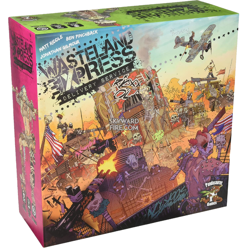 Wasteland Express Delivery Service is the depraved brainchild of a superstar team of acclaimed game designers: Jon Gilmour (Dead of Winter), Matt Riddle (Fleet, Morocco), and Ben Pinchback (Fleet, Morocco), brought to technicolor life by award-winning comic artist Riccardo Burchielli (DMZ, Batman Black and White) to create the perfect marriage of emergent thematic gameplay and balanced strategy.