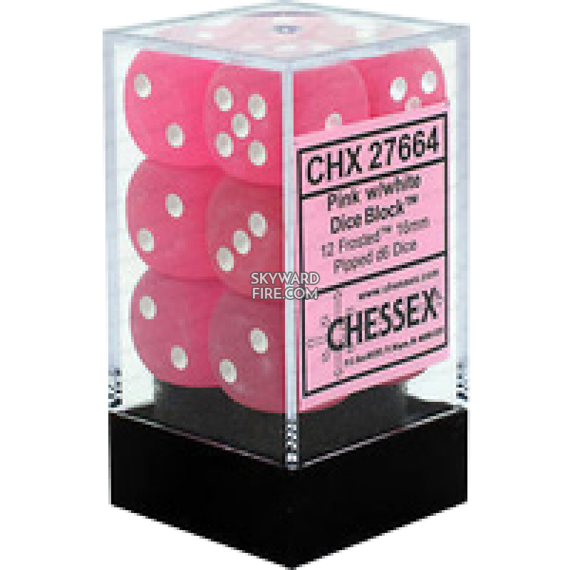 CHESSEX DICE: 16mm D6 Dice Block: Frosted Pink / White (12 DICE)