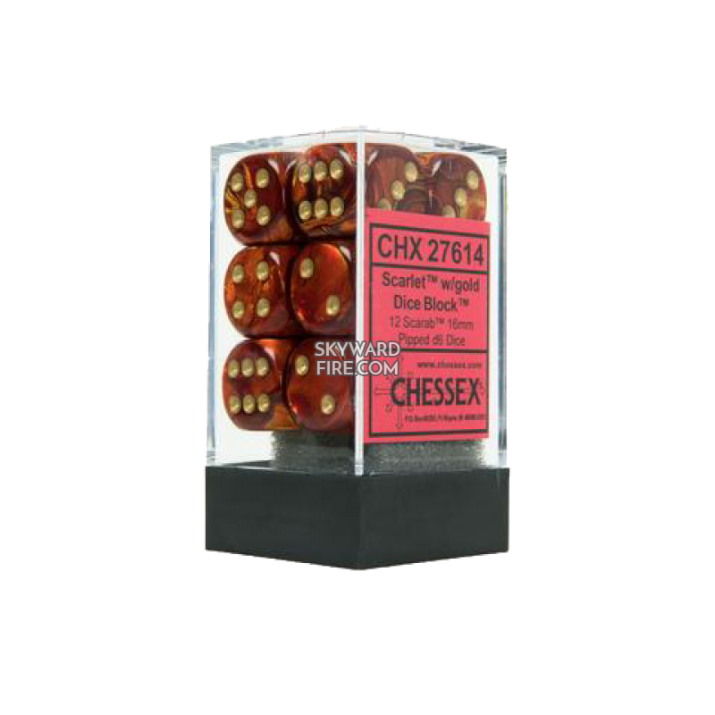 CHESSEX DICE: 16mm D6 Dice Block: Scarab Scarlet / Gold (12 DICE)