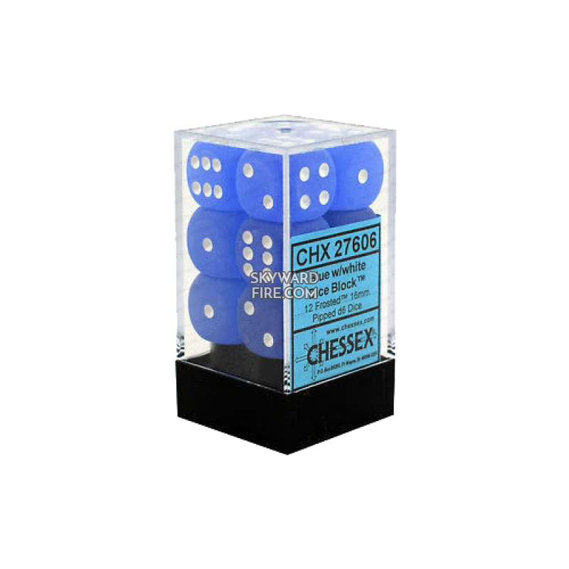 CHESSEX DICE: 16mm D6 Dice Block: Frosted Blue / White (12 DICE)