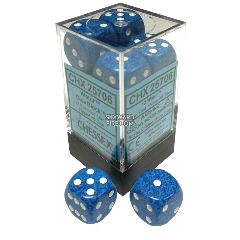 CHESSEX DICE: 16mm D6 Dice Block: Speckled Water (12 DICE)