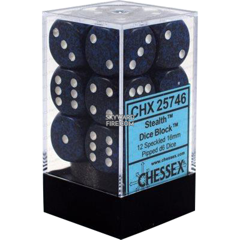 CHESSEX DICE: 16mm D6 Dice Block: Speckled Stealth (12 DICE)