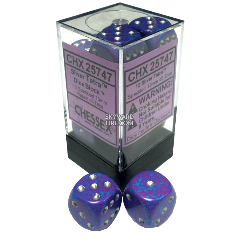 CHESSEX DICE: 16mm D6 Dice Block: Speckled Silver / Tetra (12 DICE)