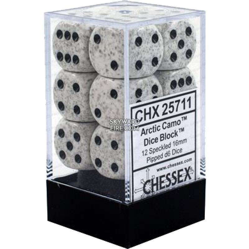 CHESSEX DICE: 16mm D6 Dice Block: Speckled Artic Camo (12 DICE)