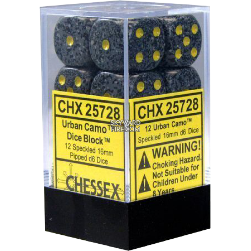 CHESSEX DICE: 16mm D6 Dice Block: Speckled Urban Camo (12 DICE)