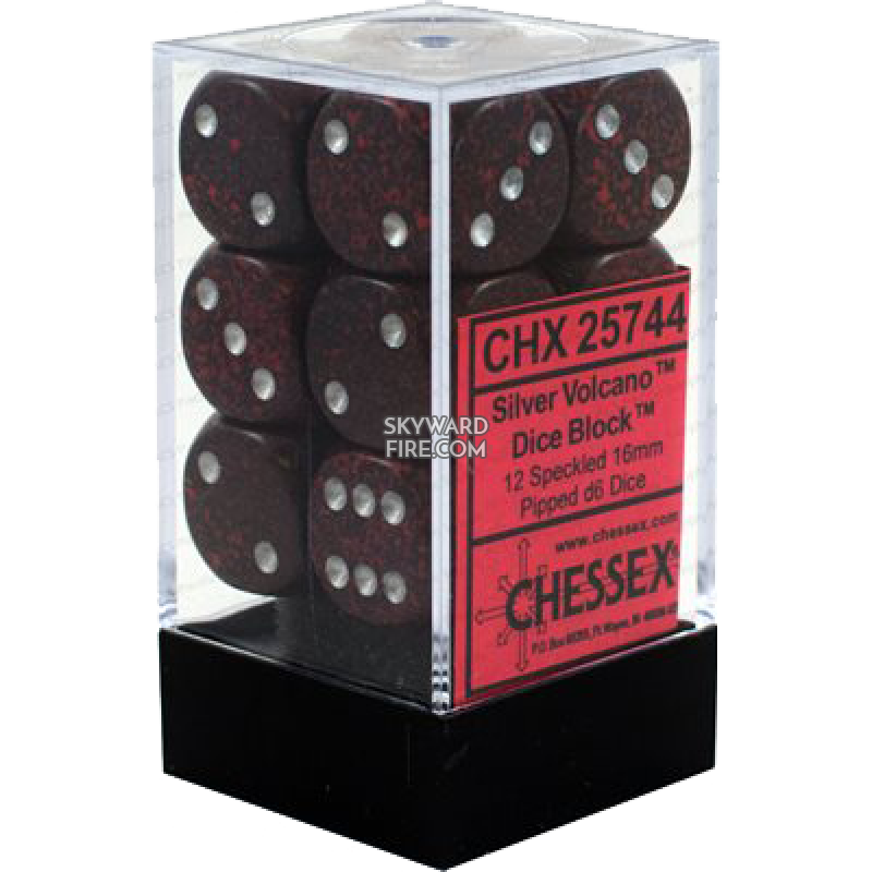 CHESSEX DICE: 16mm D6 Dice Block: Speckled Silver Volcano (12 DICE)