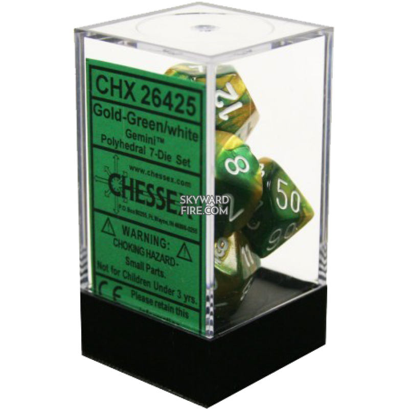 CHESSEX - Gemini Polyhedral 7 Dice Set - Gold-Green / White