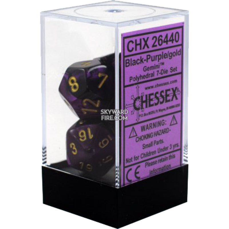 CHESSEX - Gemini Polyhedral 7 Dice Set - Black-Purple / Gold