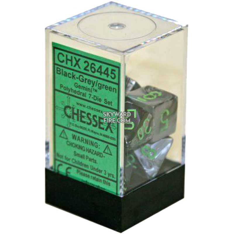 CHESSEX - Gemini Polyhedral 7 Dice Set - Black-Grey / Green