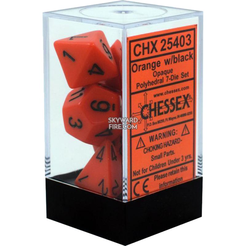 CHESSEX DICE: Polyhedral Set Of 7 Dice Block: Opaque Orange / Black