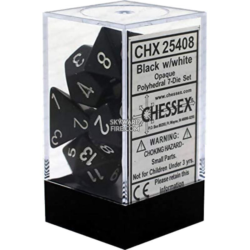 CHESSEX DICE: Polyhedral Set Of 7 Dice Block: Opaque Black / White
