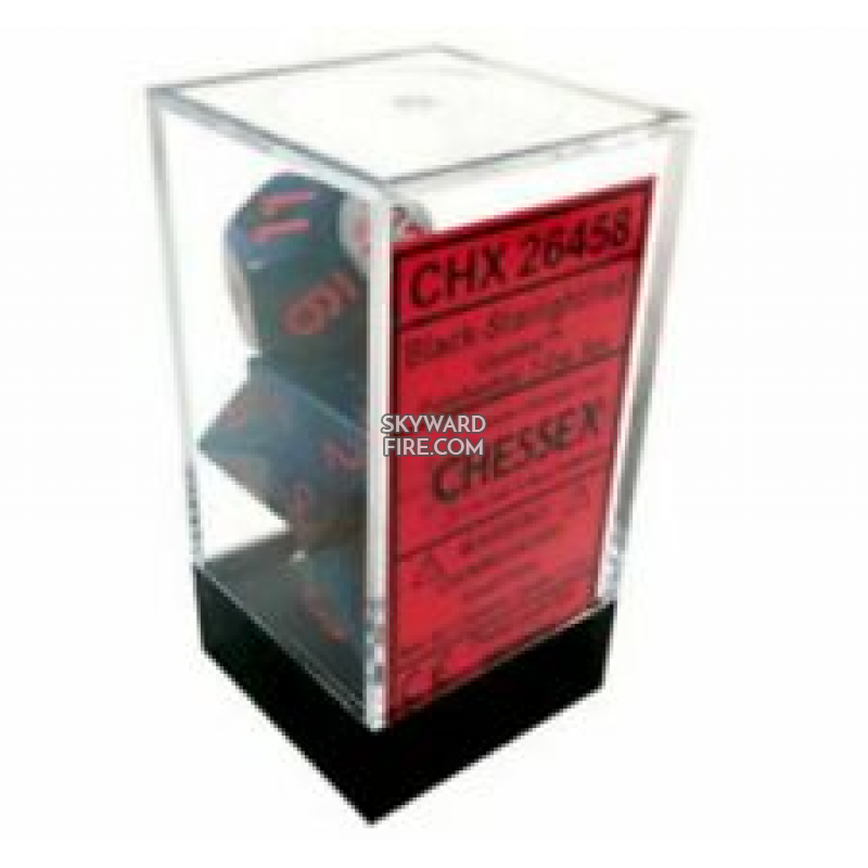 CHESSEX - Gemini Polyhedral 7 Dice Set - Black Starlight / Red