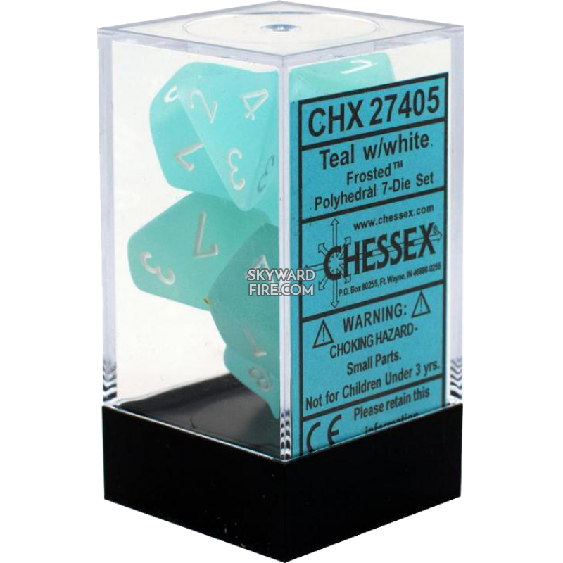 CHESSEX - Frosted Polyhedral 7 Dice Set - Teal / White