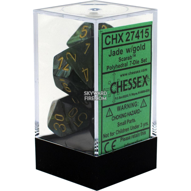 CHESSEX DICE: Polyhedral Set Of 7 Dice Block: Scarab Jade / Gold