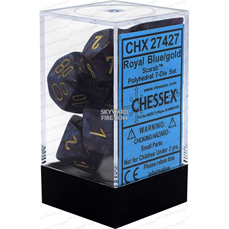 CHESSEX DICE: Polyhedral Set Of 7 Dice Block: Scarab Royal Blue / Gold