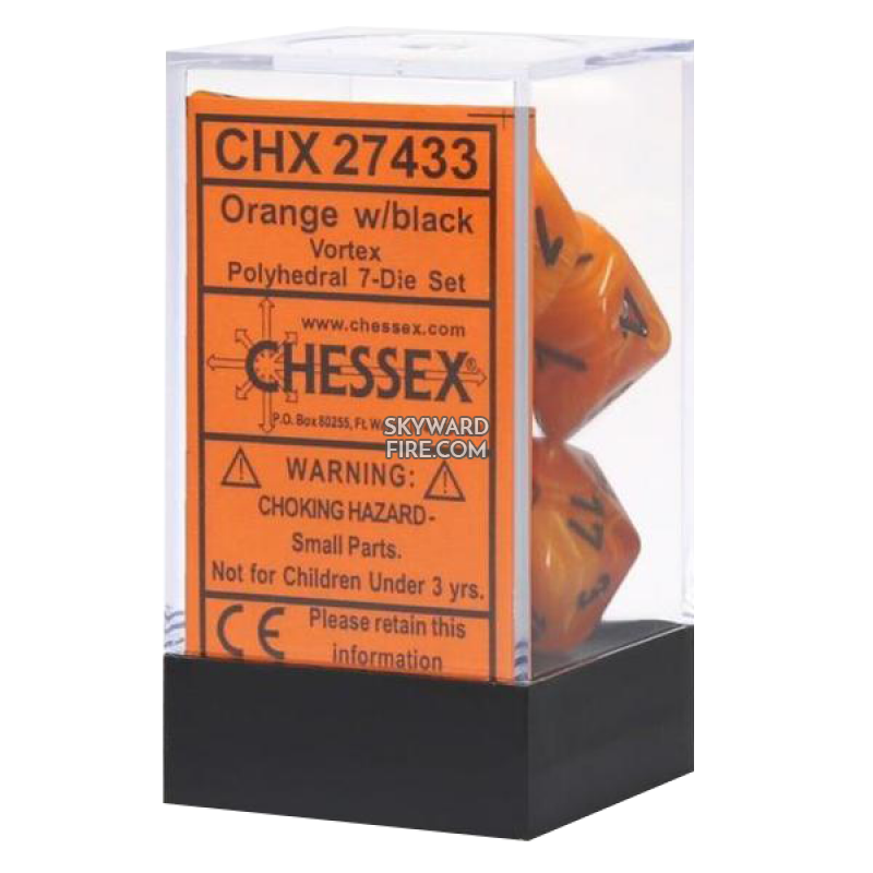 CHESSEX DICE: Polyhedral Set Of 7 Dice Block: Vortex Orange / Black