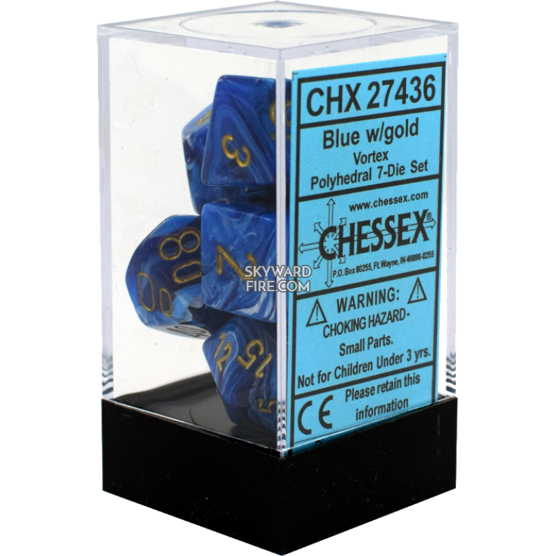 CHESSEX DICE: Polyhedral Set Of 7 Dice Block: Vortex Blue / Gold