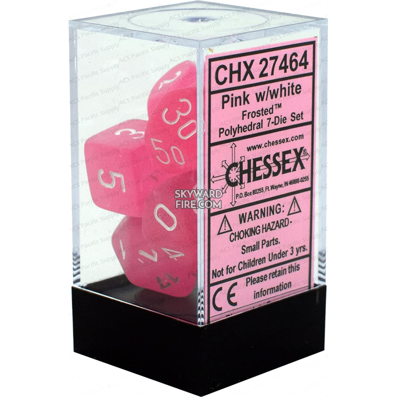 CHESSEX - Frosted Polyhedral 7 Dice Set - Pink / White