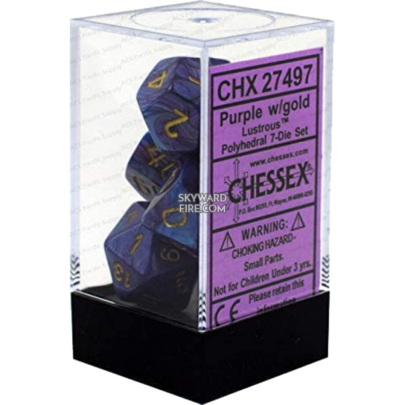 CHESSEX DICE: Polyhedral Set Of 7 Dice Block: Lustrous Purple / Gold