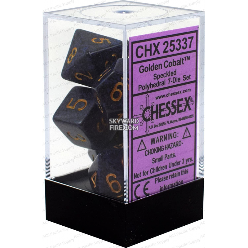 CHESSEX DICE: Polyhedral Set Of 7 Dice Block: Speckled Golden Cobalt