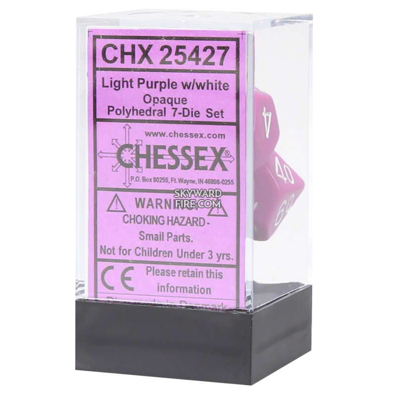 CHESSEX DICE: Polyhedral Set Of 7 Dice Block: Opaque Light Purple / White