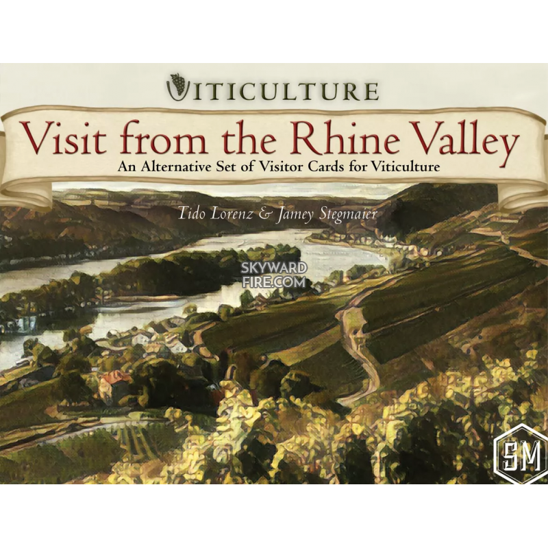 You have new visitors! Visit from the Rhine Valley, an expansion for Viticulture, provides you with a new set of eighty visitor cards, which focus less on victory points and more on the wine business itself. These cards have their own unique backs as they must be played without other visitor cards from Viticulture, Tuscany, and Moor Visitors.