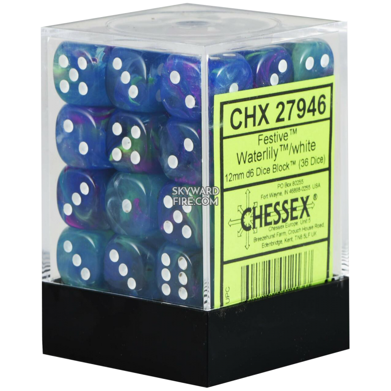 CHESSEX DICE: 12mm Set Of 36 Dice Block: Festive Waterlily / White