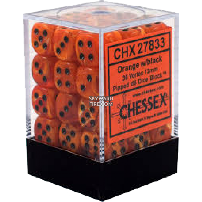 CHESSEX DICE: 12mm Set Of 36 Dice Block: Vortex Orange / Black