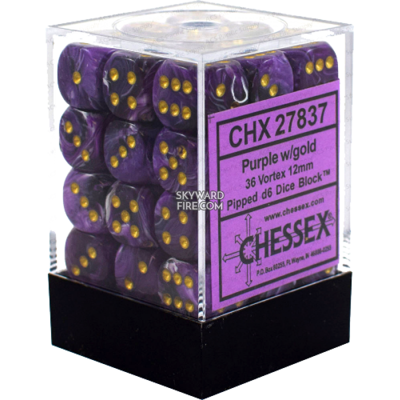 CHESSEX DICE: 12mm Set Of 36 Dice Block: Vortex Purple / Gold