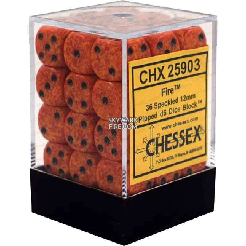 CHESSEX DICE: 12mm Set Of 36 Dice Block: Speckled Fire