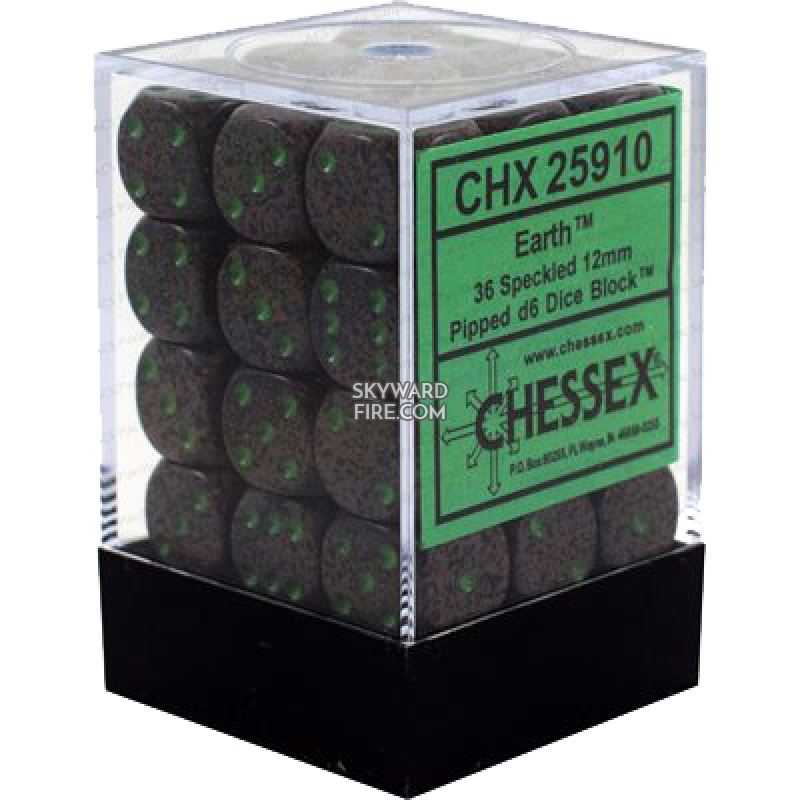 CHESSEX DICE: 12mm Set Of 36 Dice Block: Speckled Earth