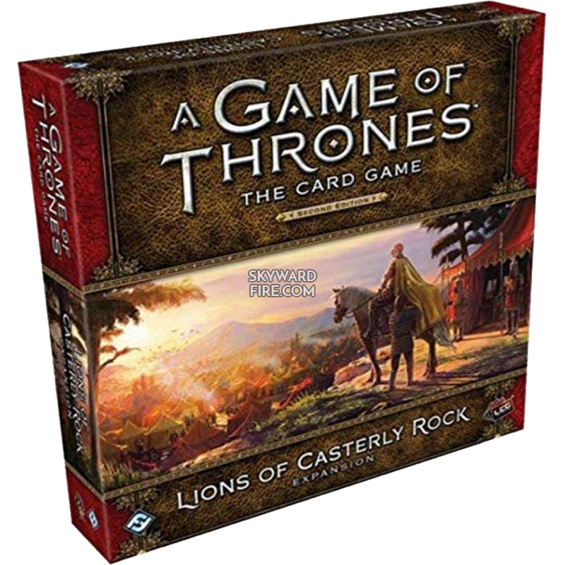 Lions of Casterly Rock, the second deluxe expansion for A Game of Thrones: The Card Game, invites you to take your place among the storied names of House Lannister. Within this expansion, the Lannisters explore new themes, launching an ambush with their Clansman allies, redoubling their focus on the intrigue challenge, and sending out marauders to pillage the lands of Westeros. You’ll also find new versions of the most iconic Lannister characters, including Tywin Lannister, Cersei Lannister, Ser Jaime Lannister, and Tyrion Lannister.