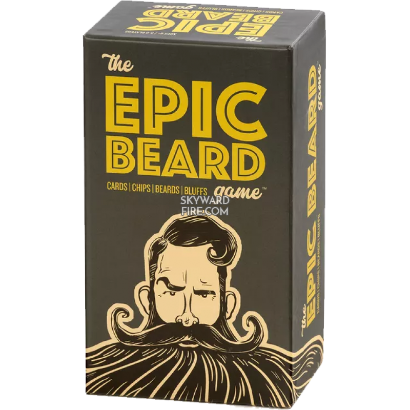 The Epic Beard Game is a classic card game with a shot of bald-faced bluffing and a twist of hirsute humor! The object is to empty your hand of all cards using deceptive ploys and tactics. So go all-in for the with with your most epic strategy while avoiding "Beardless Harry"! It's wild and woolly fun with cards, chips, beards, and bluffs. (From box.)