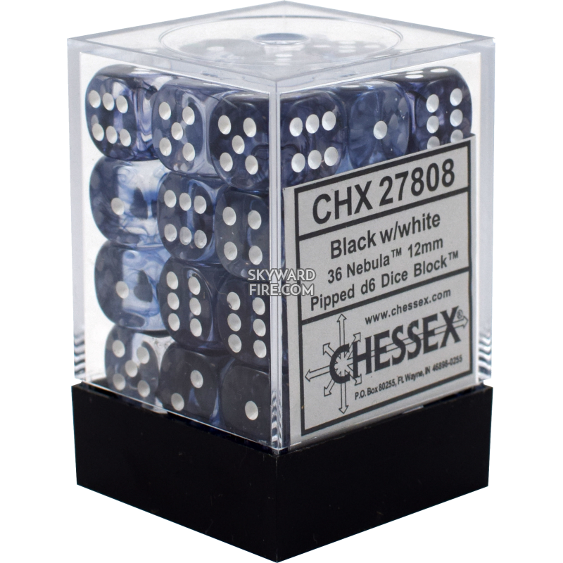 CHESSEX DICE: 12mm Set of 36 Dice Block: Nebula Black / White