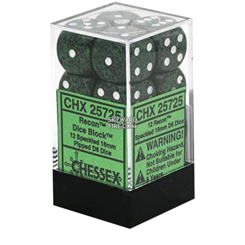 CHESSEX DICE: 16mm D6 Dice Block: Speckled Recon (12 DICE)