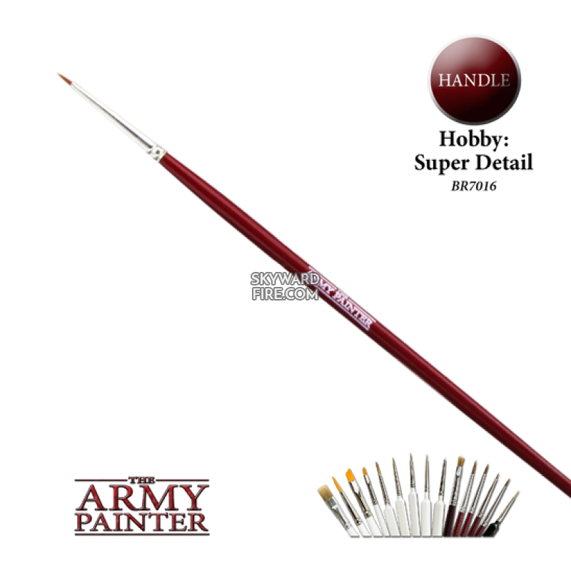 This super fine hobby brush is for the smallest of paint jobs, like dotting the eyes or painting fine lines. The Super Detail brush comes with the characteristic red handle.