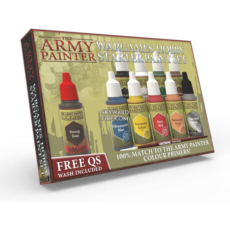 The perfect Starter Paint set for any wargaming system. All the base colours you need for painting miniatures. In this set you will find 10 of the most needed colours - including one FREE Quickshade Wash that makes your miniatures come to life with a natural shading. The set even provides you with a brush to get you started!