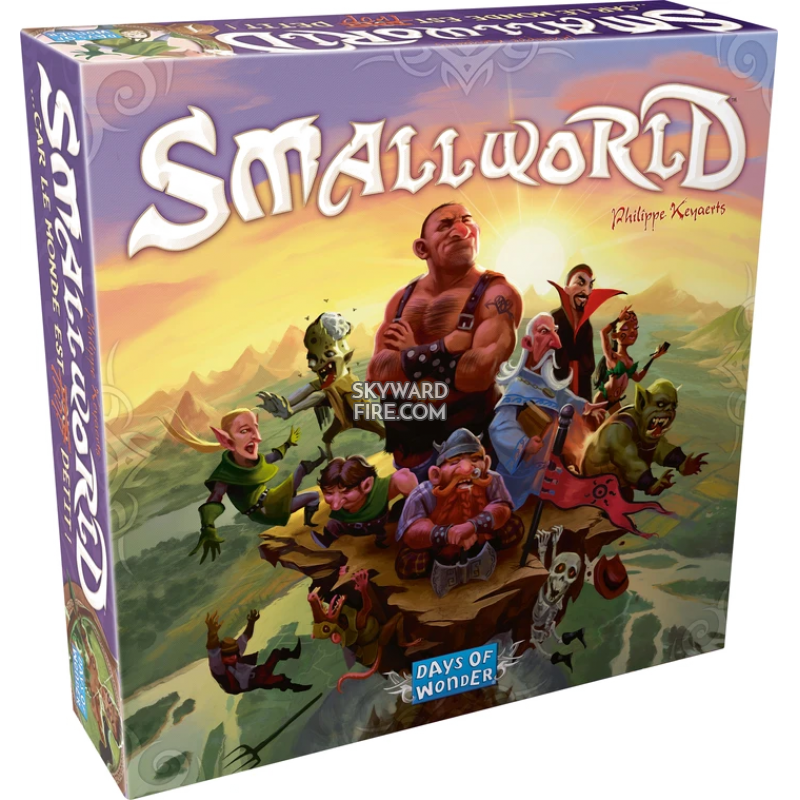 Designed by Philippe Keyaerts as a fantasy follow-up to his award-winning Vinci, Small World is inhabited by a zany cast of characters such as dwarves, wizards, amazons, giants, orcs, and even humans, who use their troops to occupy territory and conquer adjacent lands in order to push the other races off the face of the earth.