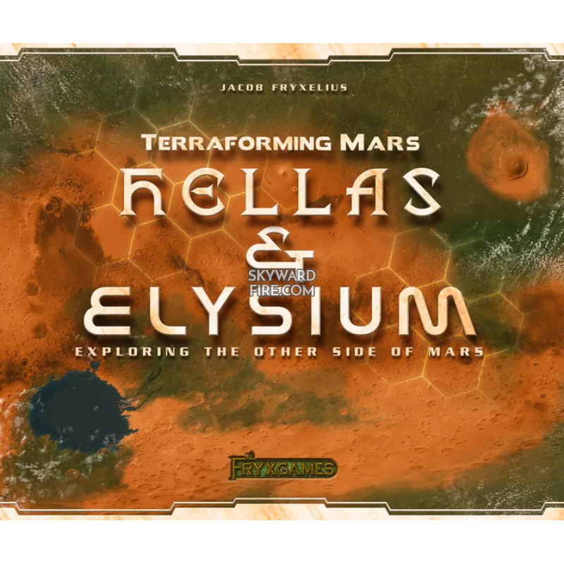 Terraforming Mars: Hellas & Elysium, the first expansion for Terraforming Mars, consists of a double-sided game board presenting two new areas of Mars: