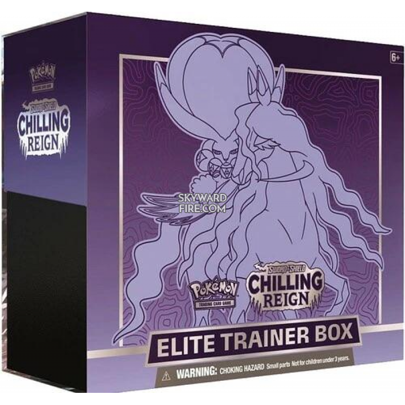 Seize the advantage with Pokémon of the frozen lands, including the powerful Ice Rider Calyrex VMAX and Shadow Rider Calyrex VMAX—plus the Galarian forms of Articuno, Zapdos, and Moltres—in Sword & Shield—Chilling Reign! Phantom hauntings, howling blizzards, and wild battles—expand the realms of your Pokémon strategy with new powers and new possibilities. Press on despite ghostly opposition, and claim total victory in the land of spectral snow with the Pokémon TCG: Sword & Shield—Chilling Reign expansion!