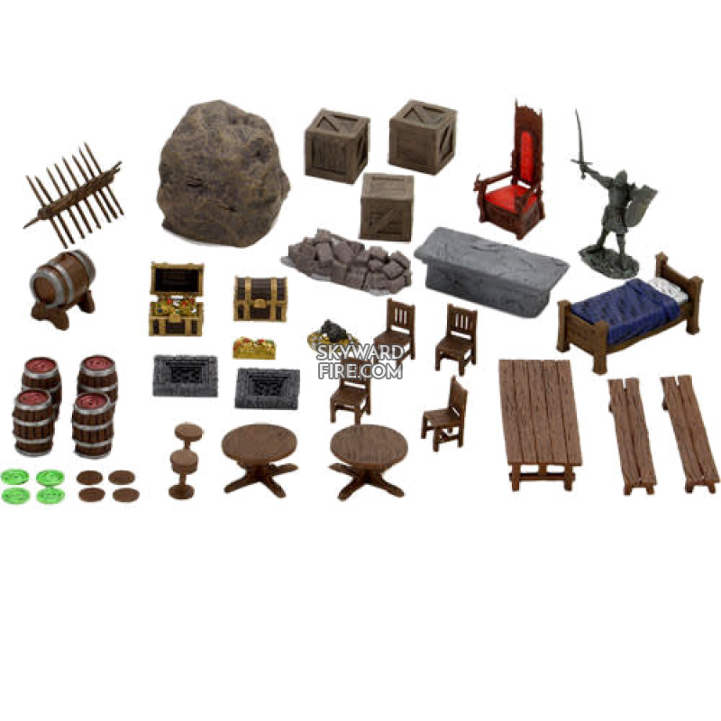 "This set of decorative items, including boulders, beds, and an altar and more."