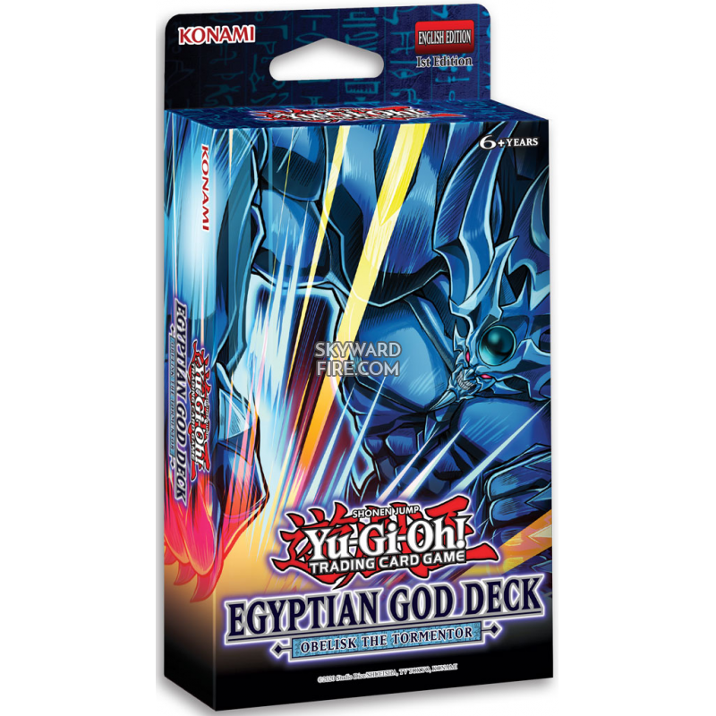 Each Egyptian God Deck is 40 cards total and includes 1 Egyptian God Card and 5 new cards – 4 unique new cards as well as 1 copy of Soul Crossing, a brand-new Quick-Play Spell Card included in both Decks that lets you Tribute Summon your Egyptian God Card by Tributing your opponent’s monsters!