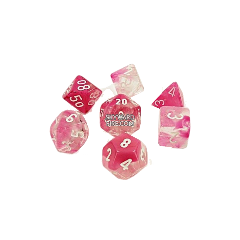 LAB DICE: Gemini Clear-Pink / White Polyhedral 7 - Dice Set